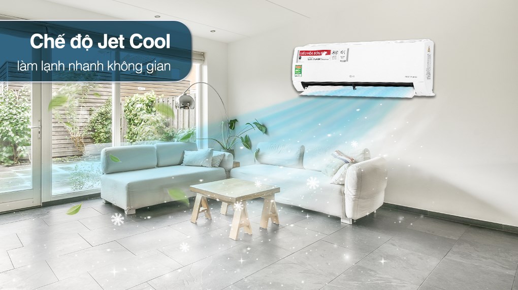 Không chỉ tiết kiệm điện, điều hòa LG B10END1 Inverter này còn có khả năng làm lạnh cực nhanh nhờ vào công nghệ Jet Cool. Công nghệ này sẽ giúp điều hòa hoạt động với công suất lớn để giảm nhiệt độ nhanh chóng xuống 5 độ C, mang đến không gian mát lạnh cực nhanh. Thêm vào đó, nhờ khả năng đẩy mạnh công suất hoạt động ngay khi vừa khởi động máy, công nghệ Dual Inverter sẽ giúp làm lạnh nhanh hơn đến 40%, tạo cho người dùng cảm giác mát lạnh gần như tức thì.
