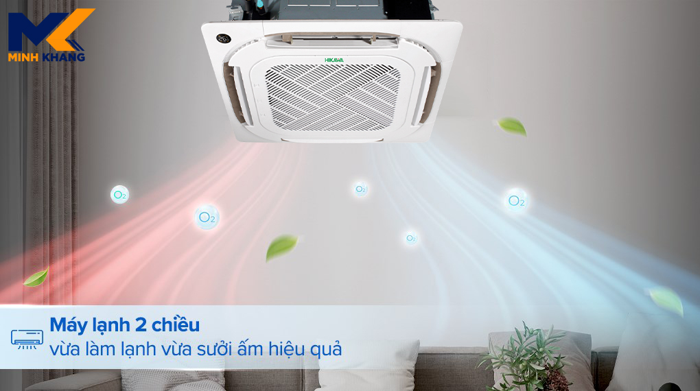 Điều hòa âm trần Hikawa này thuộc dòng 2 chiều có 2 chức năng làm lạnh và sưởi ấm, nhờ đó mang tới cho người dùng không gian mát lạnh vào những ngày hè nắng nóng và ấm áp vào những ngày đông lạnh giá như miền Bắc hay các khu vực miền núi Việt Nam,…Nhờ đó không cần phải sắm thêm thiết bị sưởi ấm riêng biệt, bạn cũng có thể tận hưởng không gian dễ chịu suốt cả năm, tiết kiệm chi phí mua sắm đáng kể, đồng thời chiều sưởi của điều hòa cũng sẽ không khiến bạn bị khô da. Bên cạnh đó, công nghệ Sprint tiên tiến giúp máy nén đạt tần số tối đa ngay sau khi khởi động, cung cấp khả năng làm mát/sưởi ấm nhanh chóng.