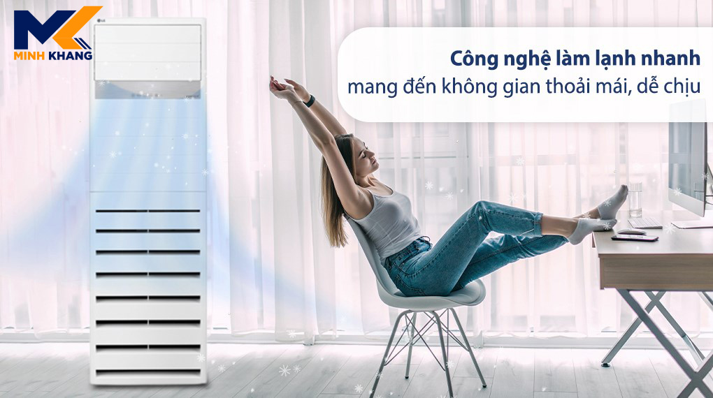 Bên cạnh công suất làm lạnh lớn 30000BTU, điều hòa cây LG ZPNQ30GR5E0/ZUAC1 còn sở hữu công nghệ làm lạnh nhanh. Khi kích hoạt, điều hòa sẽ vận hành với tốc độ quạt siêu nhanh để thổi luồng gió hướng lên phía trên, nhờ đó không khí lạnh sẽ nhanh chóng bao phủ khắp căn phòng, giúp người dùng có thể tận hưởng không gian mát lạnh sảng khoái mà không tốn thời gian chờ đợi như ở chế độ làm mát thông thường. Điều này vô cùng hữu ích vào những ngày thời tiết nắng nóng hay trong phòng có đông người.