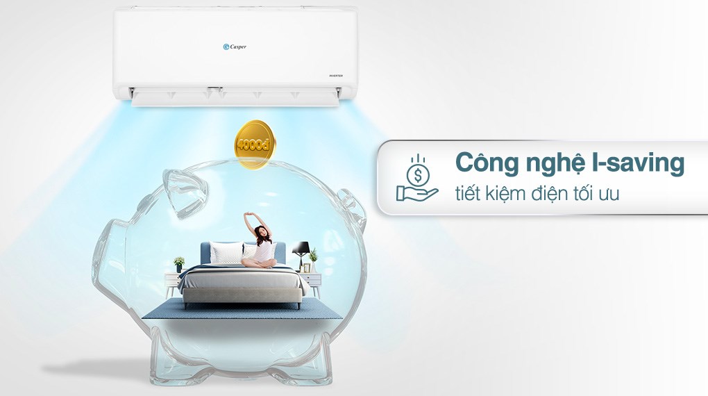 Điều hòa Casper GC-12IS35 12000BTU này được ứng dụng công nghệ i-Saving hiện đại với cơ chế vận hành thông minh, điều chỉnh nhiệt độ theo hình sin thay vì đường thẳng như truyền thống. Nhờ đó không chỉ giúp máy vận hành êm ái, bền bỉ mà còn tiết kiệm điện lên đến 50%. Thêm vào đó, sản phẩm còn được được trang bị chế độ Turbo hoạt động ở cấp độ thổi gió cao nhất mang đến hiệu quả làm mát cực nhanh chỉ trong 30s giúp người dùng tận hưởng ngay bầu không khí dễ chịu mát mẻ.