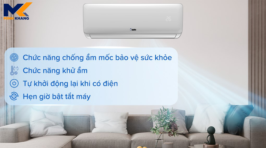 Điều hòa KoolMan này có khả năng làm lạnh cực nhanh giúp mang đến cho người dùng không gian mát lạnh sảng khoái tức thì mà không phải chờ đợi quá lâu như ở chế độ làm mát thông thường. Thêm vào đó, sản phẩm được tích hợp loạt tính năng hiện đại như tính năng hẹn giờ, chuẩn đoán lỗi, tự khởi động lại khi có diện hay chế độ ngủ giúp mang đến trải nghiệm tuyệt vời cho người dùng.