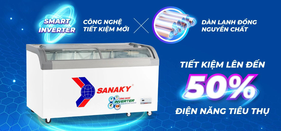 Vì là thiết bị hoạt động liên tục thế nên tủ đông tiêu tốn khá nhiều điện năng, đây cũng là nỗi lo của hầu hết người tiêu dùng khi sử dụng tủ. Thế nhưng tủ đông Sanaky VH-899K3A lại được trang bị công nghệ Inverter giúp bạn không phải quá lo lắng về vấn đề này. Khi đạt đến mức nhiệt phù hợp, máy nén sẽ duy trì mức công suất nhỏ nhất, từ đó điều chỉnh từ công suất này lên đến nhiệt độ phù hợp mà không cần phải khởi động lại, cho hiệu quả tiết kiệm điện lên đến 50%. Thêm vào đó, công nghệ Inverter còn giúp cho tủ đông vận hành êm ái, bền bỉ, hạn chế rung lắc khi tủ vận hành.