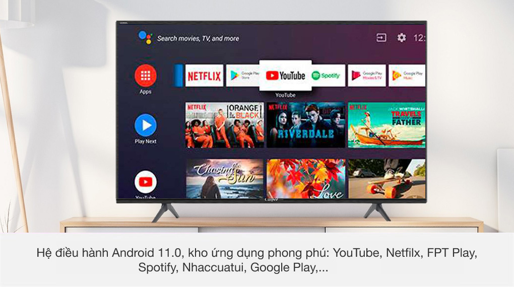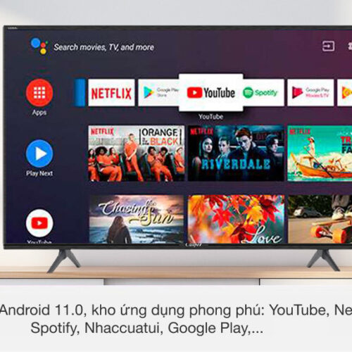Tivi sử dụng hệ điều hành Android 11.0 được thiết kế giao diện thân thiện, giúp người dùng có thể nhanh chóng làm quen các sử dụng. Bên cạnh đó, kho ứng dụng có sẵn vô cùng phong phú như Youtube, Google Play, Netflix, trình duyệt web đáp ứng đa dạng nhu cầu giải trí cho người dùng.