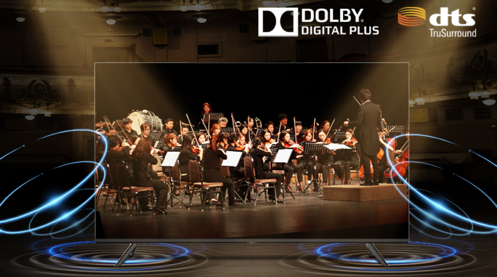 Tivi được tích hợp công nghệ âm thanh Dolby Digital Plus giúp tạo ra âm thanh vòm rõ ràng và sinh động, cho phép tạo ra một trải nghiệm nghe đầy chân thật, sống động và hài hòa với nội dung hình ảnh bạn đang xem.