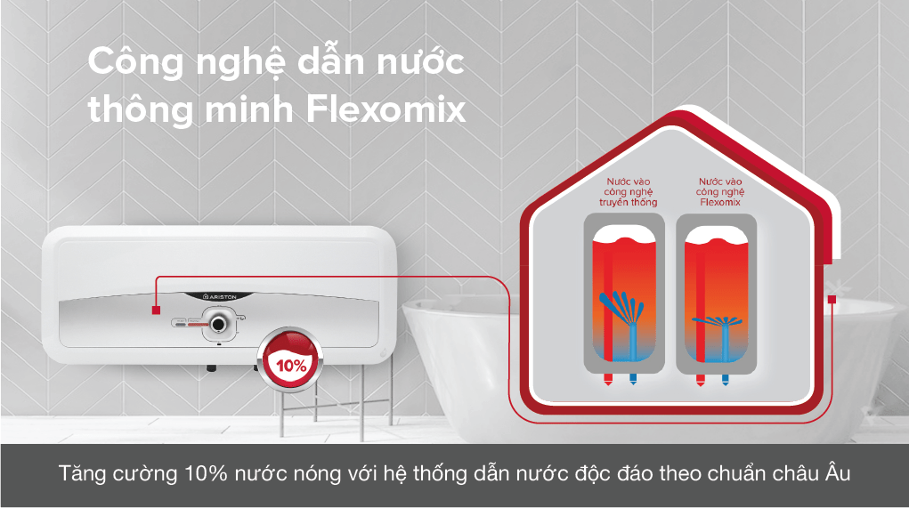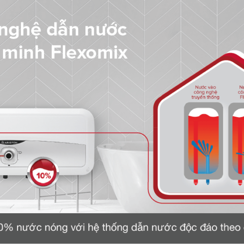 Flexomix là hệ thống ống dẫn nước cho phép cung cấp lượng nước nóng nhiều hơn 10% so với các bình nước nóng có cùng dung tích trong thời gian ngắn nhất, nhờ vậy người dùng sẽ không còn lo sợ nước nóng chảy chậm hay hết nước khi đang sử dụng.