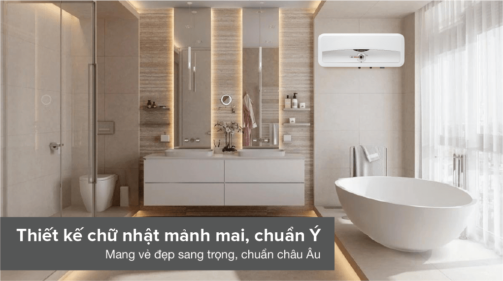 Bình nóng lạnh Ariston 30 Lít SL2 30 RS 2.5FE sở hữu thiết kế hình chữ nhật nhỏ gọn giúp tiết kiệm không gian lắp đặt, gam màu trắng sạch sẽ phù hợp với nhiều không gian phòng tắm khác nhau. Máy có hệ thống làm nóng gián tiếp với bình chứa 30 LÍT có thể cung cấp nước nóng cho gia đình có từ 3-5 thành viên.