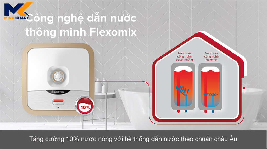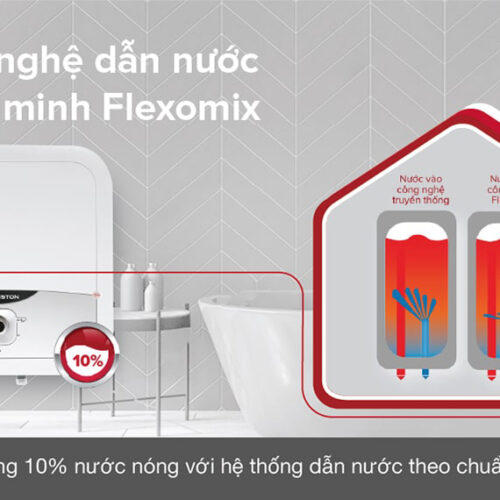 Flexomix là hệ thống ống dẫn nước cho phép cung cấp lượng nước nóng nhiều hơn 10% so với các bình nước nóng có cùng dung tích trong thời gian ngắn nhất, nhờ vậy người dùng sẽ không còn lo sợ nước nóng chảy chậm hay hết nước khi đang sử dụng.