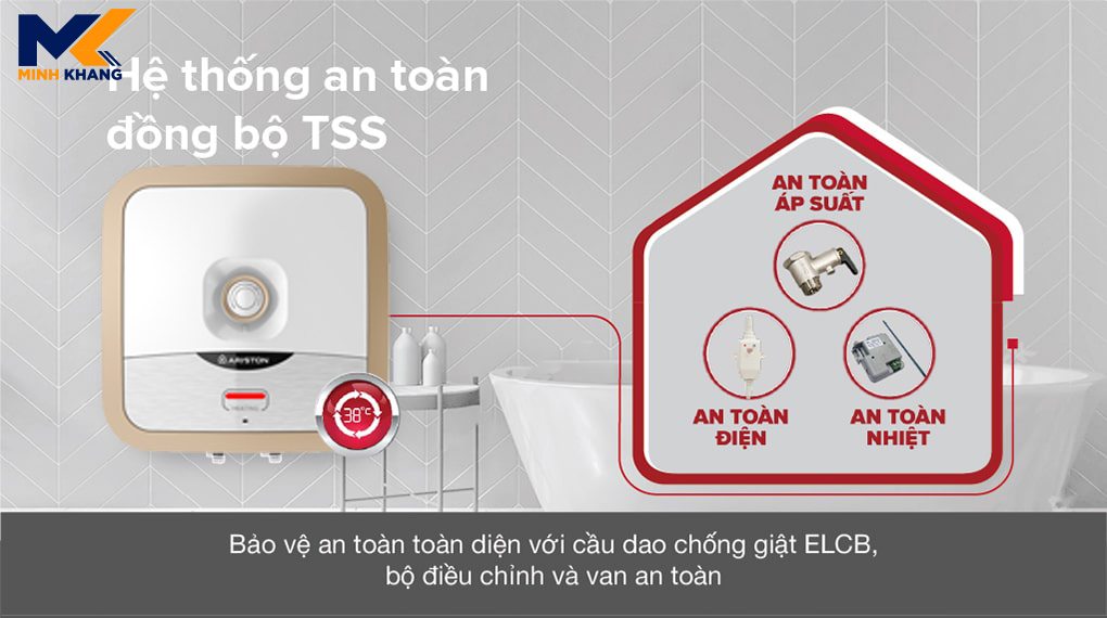 Bình nóng lạnh Ariston AN2 15 R 2.5FE sở hữu hệ thống an toàn đồng bộ TSS bao gồm các tính năng: