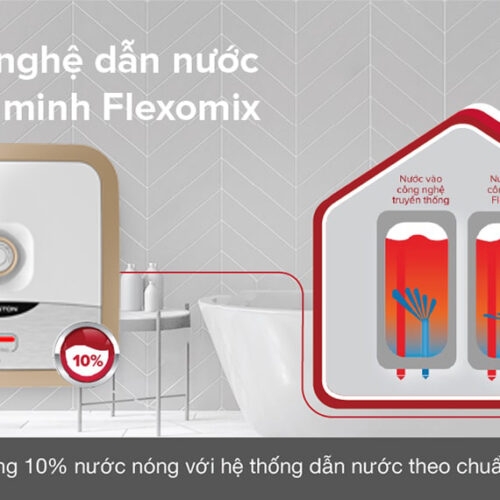Flexomix là hệ thống ống dẫn nước cho phép cung cấp lượng nước nóng nhiều hơn 10% so với các bình nước nóng có cùng dung tích trong thời gian ngắn nhất, nhờ vậy người dùng sẽ không còn lo sợ nước nóng chảy chậm hay hết nước khi đang sử dụng.