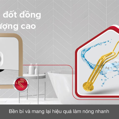 Bình nóng lạnh này sử dụng thanh đun nóng 100% bằng đồng giúp người dùng mau chóng có nguồn nước nóng sử dụng mà không phải chờ lâu. Ngoài ra tuổi thọ của thanh đốt cũng rất bền, người dùng không phải lo thanh đốt bị bám cặn ảnh hưởng đến khả năng đun nước.