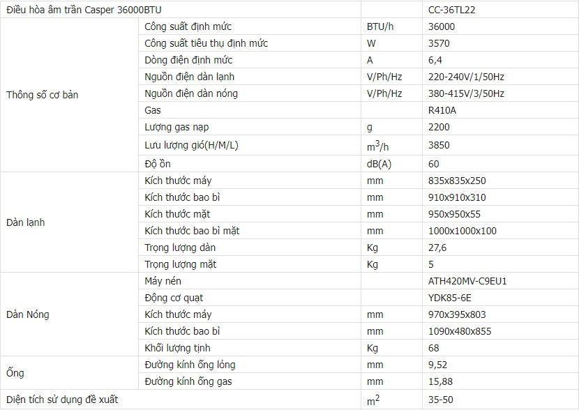 Điều Hòa Âm Trần Casper CC-36FS35 36000BTU 1 Chiều