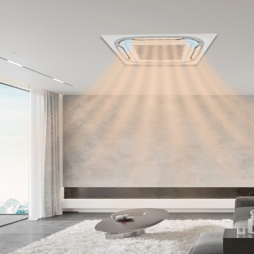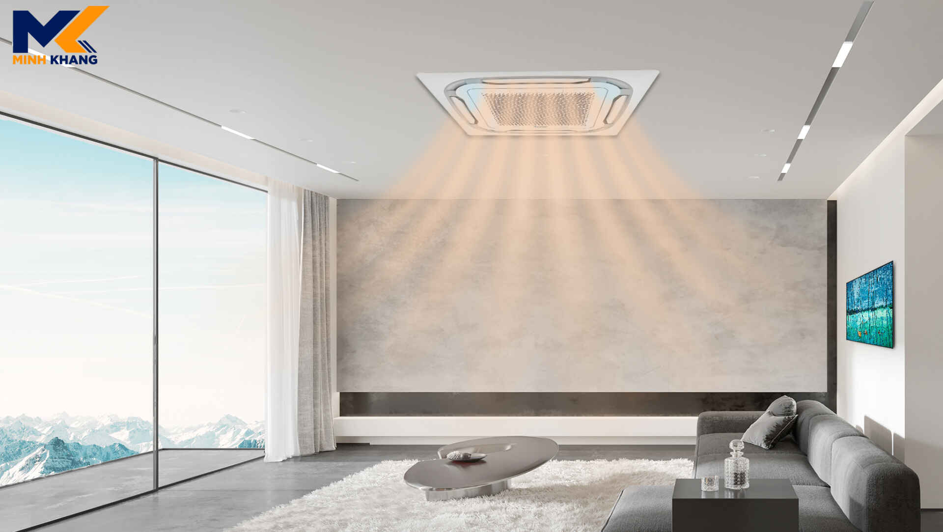 Dàn lạnh âm trần cassette với cấu trúc quạt tối ưu và bổ sung lớp đệm mút chống ồn, giúp giảm độ ồn, phù hợp với các không gian thương mại như văn phòng, nhà hàng, cửa hàng hay phòng khách gia đình,…