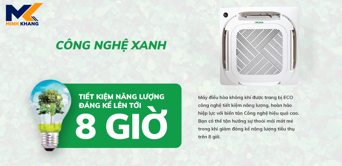 Điều hòa âm trần Hikawa này được trang bị chip Genus cho phép thu thập tín hiệu và xử lý dữ liệu chính xác, giúp máy nén hoạt động hiệu quả. Với thuật toán điều khiển này sẽ cho hiệu quả tiết kiệm đến 71% năng lượng. Thêm vào đó, điều hòa còn được trang bị chế độ Eco giúp cho máy vận hành êm ái, mang đến sự thoải mái và có thể tiết kiệm tới 50% điện năng.
