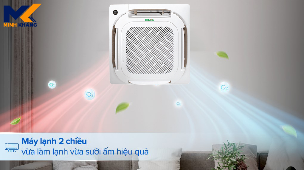 Điều hòa âm trần Hikawa này thuộc dòng 2 chiều có 2 chức năng làm lạnh và sưởi ấm, nhờ đó mang tới cho người dùng không gian mát lạnh vào những ngày hè nắng nóng và ấm áp vào những ngày đông lạnh giá như miền Bắc hay các khu vực miền núi Việt Nam,…