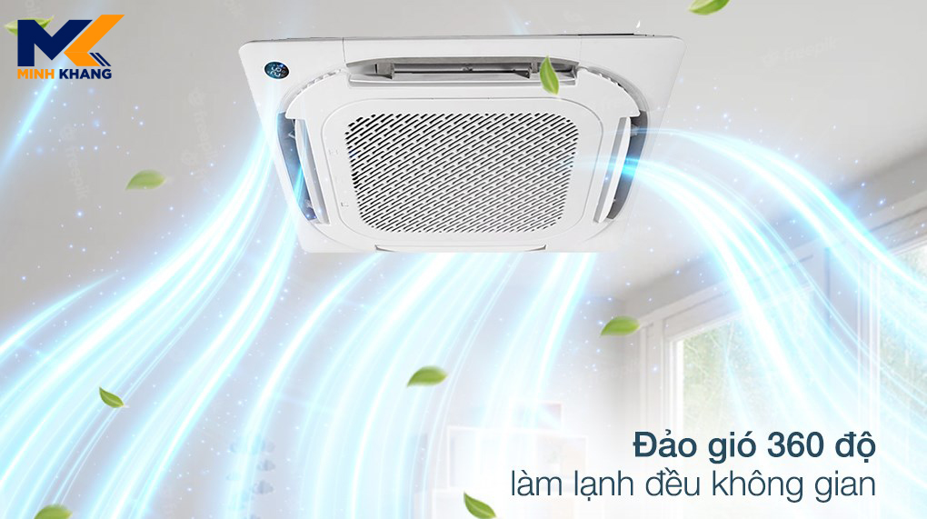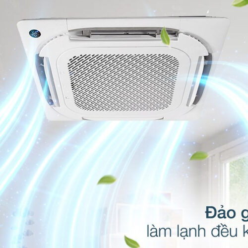 – Luồng gió 360 độ cùng mặt nạ thổi gió được thiết kế đặc biệt, cánh quạt đảo giúp dẫn hơi lạnh luân chuyển đều khắp ngóc ngách trong phòng, đồng thời có khả năng tạo ra luồng khí đa chiều tự động, đem lại hiệu suất làm lạnh tối ưu cho toàn bộ không gian.