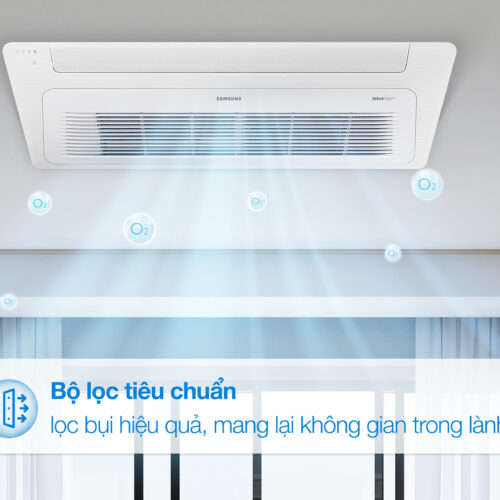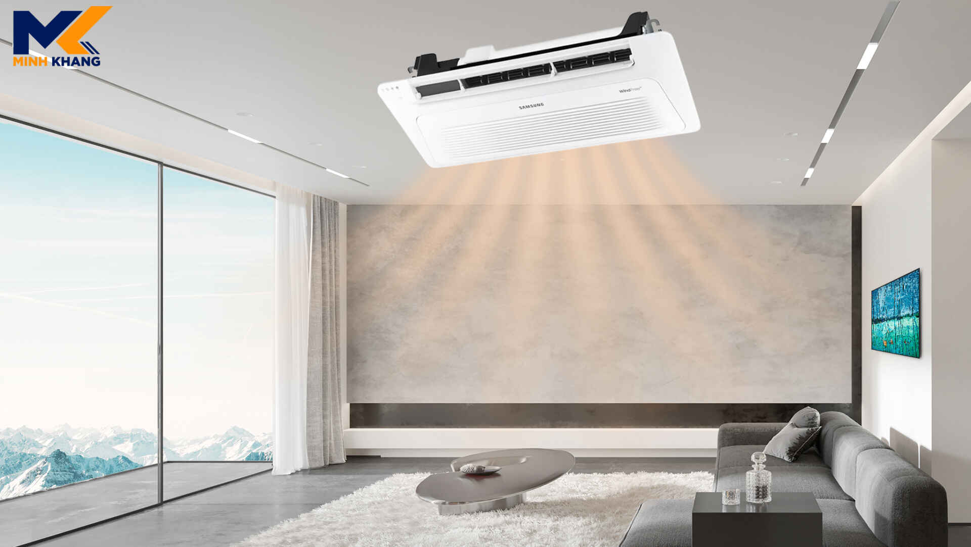 Điều hòa âm trần Samsung 12000BTU 2 Chiều Inverter AC035RN1DKG/EU-AC035RXADKG/EU với thiết kế có thể lắp âm vào bề mặt trần nhà góp phần làm tăng tính thẩm mĩ cho công trình, với gam màu trắng trang nhã dễ dàng kết hợp với nội thất trong nhà. Góc của điều hòa có dải đèn báo đang hoạt động và các chế độ đang được sử dụng, khi được kích hoạt sẽ tự động sáng giúp bạn có thể dễ dàng quan sát.