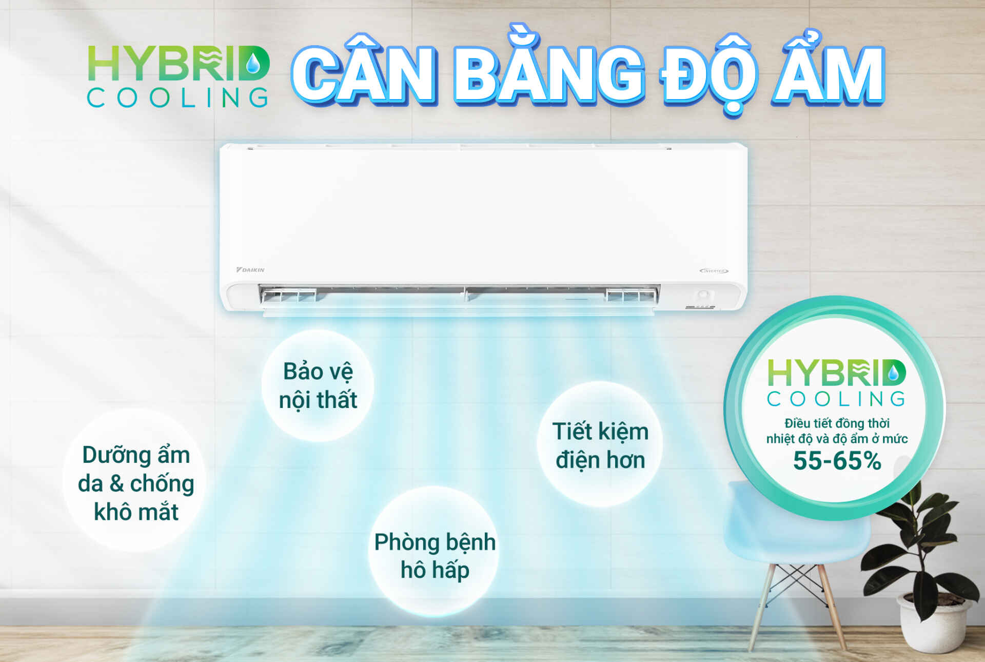 – Công nghệ Hybrid Cooling với cảm biến đo độ ẩm và công nghệ kiểm soát khử ẩm trên dàn lạnh, điều hòa giúp duy trì độ ẩm trong phòng luôn ở mức lý tưởng từ 55-65%.