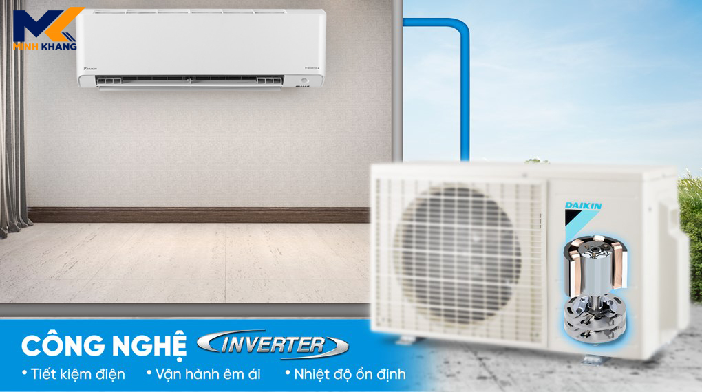 – Điều hòa Daikin sử dụng máy nén Swing và động cơ DC từ trở giúp tiết kiệm dài hạn bằng việc giảm hóa đơn tiền điện đáng kể so với dòng máy điều hòa thông thường (non-inverter). Đồng thời, công nghệ Inverter còn giúp cải tiến độ ồn dàn nóng và dàn lạnh giúp máy hoạt động êm ái, duy trì nhiệt độ ổn định và đạt công suất tối ưu.