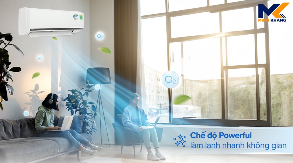 - Chế độ làm lạnh nhanh Powerful giúp tăng cường khả năng làm lạnh, máy sẽ được vận hành bằng cách tăng tốc độ quay của quạt dàn lạnh và tần số của máy nén lên tối đa giúp nhanh chóng đạt đến nhiệt độ cài đặt, mang tới cho người dùng cảm giác sảng khoái tức thì.