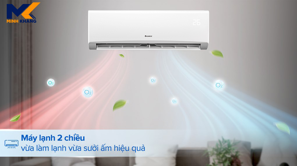 Bên cạnh khả năng làm mát, điều hòa Gree 2 chiều này còn giúp đem đến cho người dùng không gian ấm áp nhờ tích hợp van đảo chiều. Như vậy người dùng có thể tận hưởng cảm giác mát lạnh vào mùa hè nắng nóng và ấm áp vào mùa đông lạnh giá.