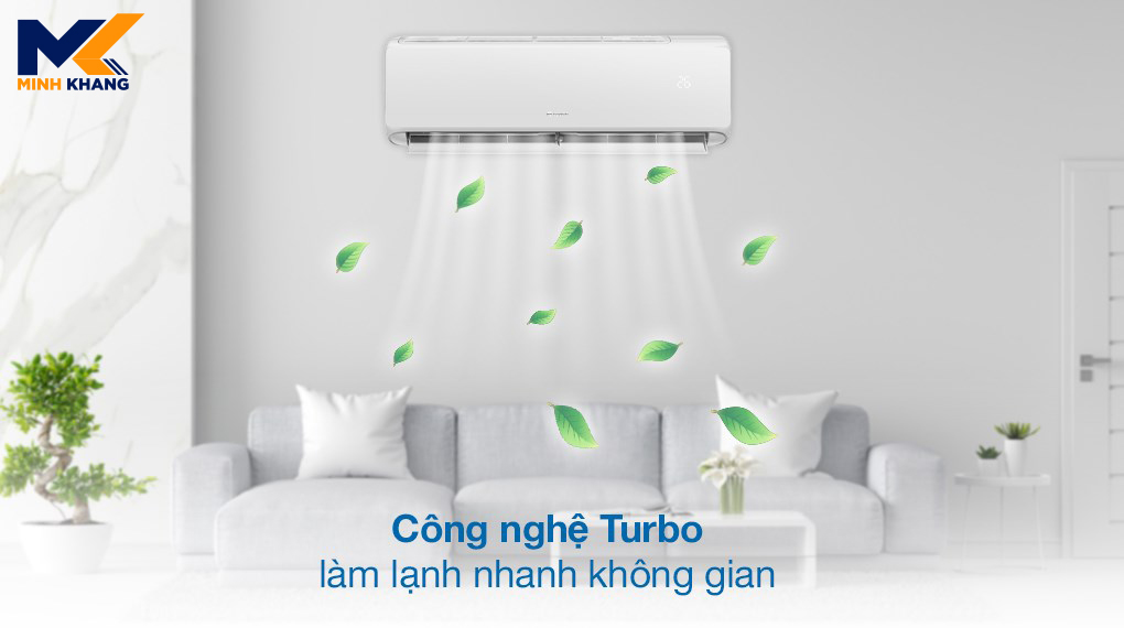 – Công nghệ làm lạnh nhanh Turbo làm lạnh nhanh hơn khi chỉ cần mất khoảng 3 phút để chờ đợi hơi lạnh lan tỏa khắp căn phòng, mang đến cho người dùng không gian dễ chịu mà không phải chờ đợi quá lâu.