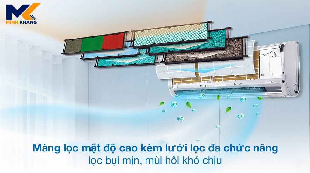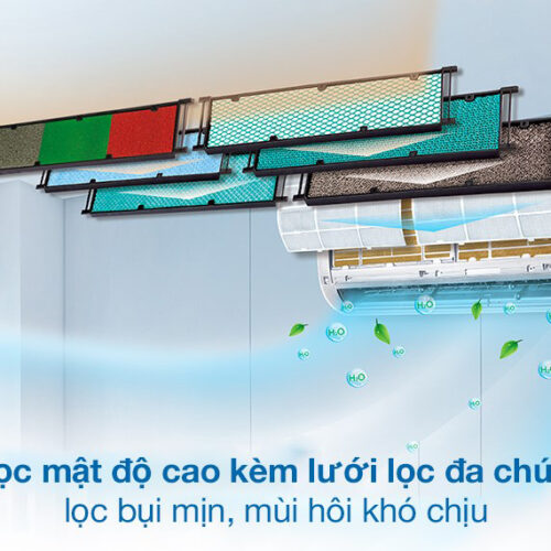 – Lưới lọc bụi mịn mật độ cao được xem như lớp lọc khí đầu tiên của điều hòa giúp ngăn ngừa sự xâm nhập của bụi bẩn vào bên trong máy, đồng thời đảm bảo luồng khí trong lành hơn, bảo vệ sức khỏe cho người dùng.