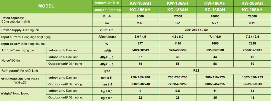 Điều hòa KoolMan 12000BTU 1 chiều KW-136AH/KC-136AH sở hữu thiết kế đơn giản nhưng không kém phần tinh tế với kiểu dáng nhỏ gọn cùng gam màu trắng tinh tế, dễ dàng hòa hợp với đa dạng không gian nội thất khác nhau. Với công suất 12000BTU, chiếc điều hòa này là sự lựa chọn phù hợp cho căn phòng có diện tích từ 15-20m2 như phòng khách, phòng ngủ.