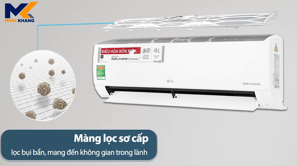 Điều hòa LG này được trang bị màng lọc sơ cấp có thể lọc bụi bẩn, lông thú có trong không khí để mang đến không gian trong lành và an toàn hơn.