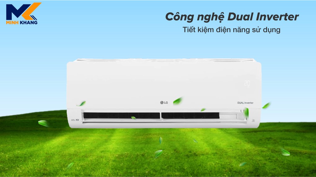 Điều hòa được ứng dụng công nghệ Dual Inverter độc quyền của LG sử dụng máy nén biến tần có thể tiết kiệm lên tới 70% năng lượng tiêu thụ mà vẫn giữ khả năng làm lạnh ổn định, giảm rung lắc đến 80%.