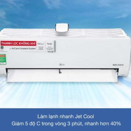 Điều hòa LG V10APFUV được trang bị công nghệ Jet Cool cho máy chạy với tốc độ quạt mạnh nhất và hạ nhiệt độ xuống 5oC chỉ trong vòng 3 phút, tạo hướng gió được thổi xa để người dùng đắm chìm trong không gian mát lạnh tức thì.