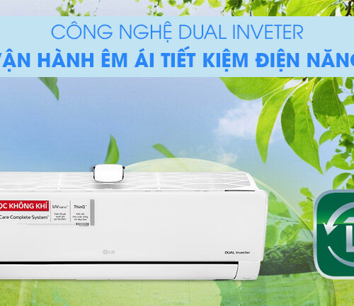 Điều hòa được ứng dụng công nghệ Dual Inverter độc quyền của LG sử dụng máy nén biến tần có thể tiết kiệm lên tới 70% năng lượng tiêu thụ mà vẫn giữ khả năng làm lạnh ổn định, giảm rung lắc đến 80%.