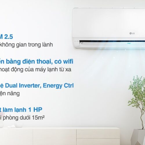 Điều hòa LG V10WIN1 9000BTU 1 chiều Inverter sở hữu thiết kế đơn giản nhưng không kém phần sang trọng với đường bo góc mềm mại, gam màu trắng tinh tế giúp tô điểm cho không gian nội thất của gia chủ. Với công suất làm lạnh 9000BTU phù hợp sử dụng cho phòng có diện tích dưới 15m2.