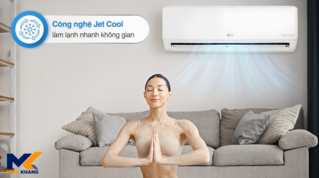 Điều hòa LG V18WIN1 18000BTU được trang bị công nghệ Jet Cool cho máy chạy với tốc độ quạt mạnh nhất và hạ nhiệt độ xuống 5oC chỉ trong vòng 3 phút, tạo hướng gió được thổi xa để người dùng đắm chìm trong không gian mát lạnh tức thì.