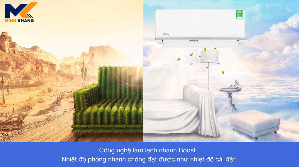 – Điều hòa Midea được trang bị chế độ Turbo hoạt động với công suất lớn giúp làm mát căn phòng nhanh chóng, đem tới cho người dùng không gian mát lạnh sảng khoái tức thì mà không phải chờ đợi quá lâu.