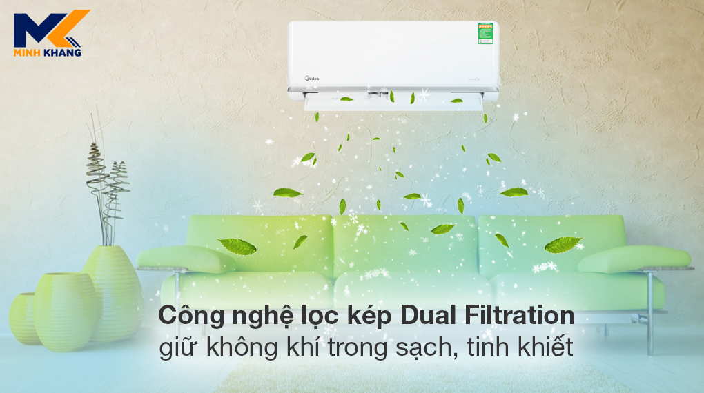 Điều hòa được trang bị công nghệ Dual Filtration, bộ lọc bụi 2 lớp HD giúp lọc sạch bụi bẩn kể cả hạt bụi mịn PM2.5, loại bỏ các tác nhân gây dị ứng, chất độc hại trả lại cho bạn không gian sống trong lành, tinh khiết, tốt cho sức khỏe của gia đình. Chức năng tự làm sạch tự động làm khô lá tản nhiệt, hạn chế tích ẩm, tránh nấm mốc hình thành và phát triển, nâng cao độ bền cho máy và giữ môi trường thêm thông thoáng, sạch sẽ.
