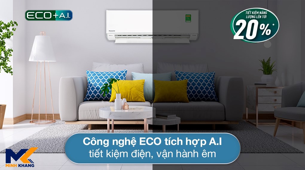 Thêm vào đó, chế độ ECO tích hợp trí tuệ nhân tạo thông minh AI nhận biệt nhiệt độ và điều chỉnh máy nén phù hợp giúp tiết kiệm thêm 20% điện năng.