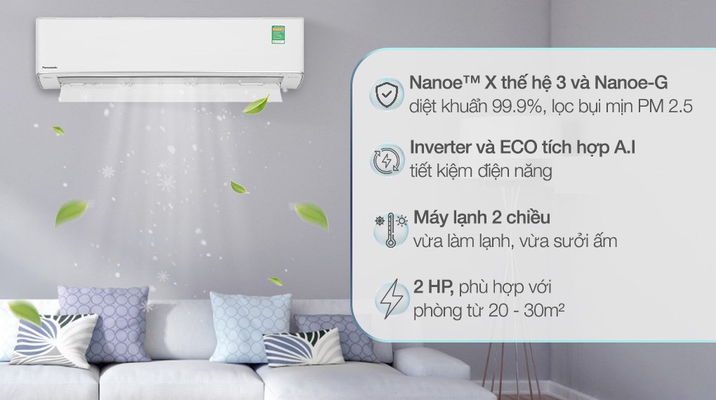 – Công nghệ Nanoe-X độc quyền của hãng có thể bật độc lập mà không bật chế độ làm mát, có mức tiêu thụ năng lượng thấp 25W/h giúp khử mùi, nấm mốc, chất gây dị ứng, phấn hoa, giữ ẩm cho da và tóc.