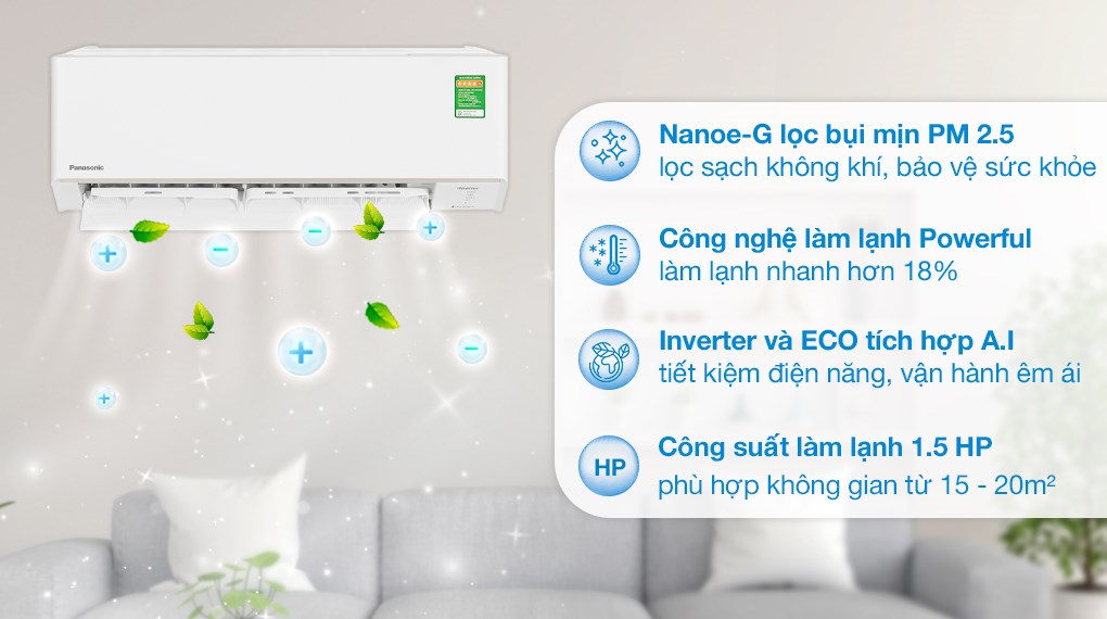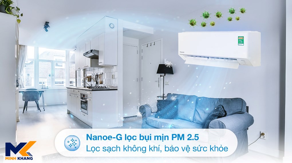 Công nghệ Nanoe-G có hiệu quả trong việc loại bỏ đến 99% hạt bụi, nanoe-G giải phóng ra các ion âm để bắt giữ các hạt bụi có kích thước nhỏ như PM2.5, đưa chúng trở lại bộ lọc để mang lại không gian trong sạch.