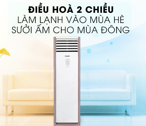 Mặc dù có thiết kế dạng đứng, điều hòa vẫn phân bổ luồng gió đều khắp căn phòng nhờ hướng gió với góc rộng, góc mở lớn giúp lưu lượng gió thổi ra nhiều hơn, giúp gia tăng khả năng làm lạnh nhanh của máy. Bên cạnh đó, quạt gió công suất cao sẽ giúp nhanh chóng lan tỏa luồng khí lạnh đi đến mọi ngóc ngách của căn phòng.