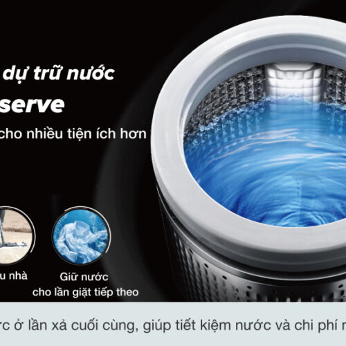 Chức năng dự trữ nước Water Reserve được thiết kế đặc biệt, ở lần xả cuối cùng, chương trình giặt không chuyển sang chu trình vắt tiếp theo mà tự động dừng lại và giữ lại nước cho mục đích khác nhau, vì vậy giúp người dùng tiết kiệm nước và chi phí hiệu quả.