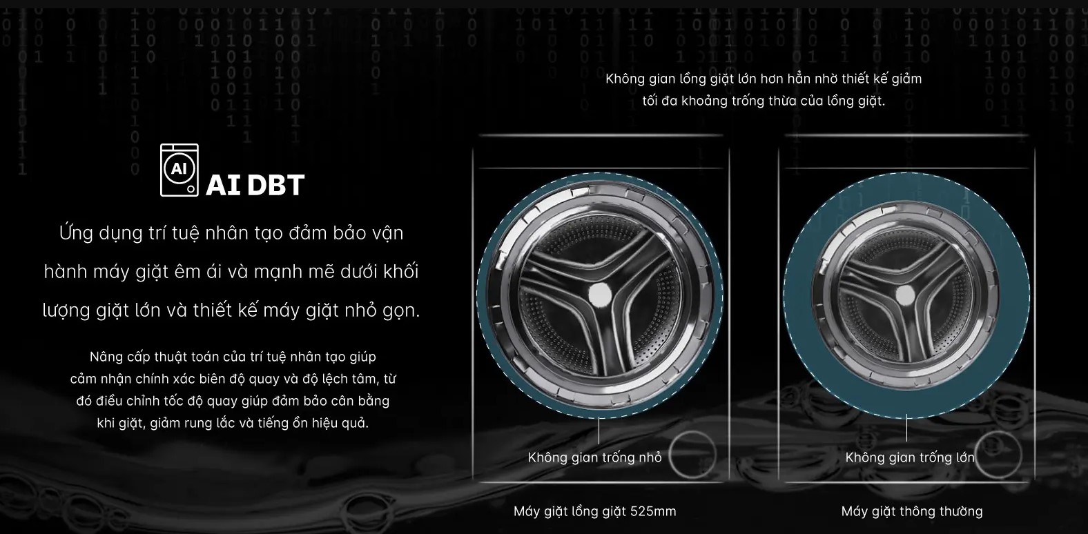 - Tiện ích khác: Giặt hơi nước, Refresh làm mới quần áo, Tia nước đôi làm sạch ron cửa, Ron ABT kháng khuẩn, Ghi nhớ chương trình giặt ưa thích