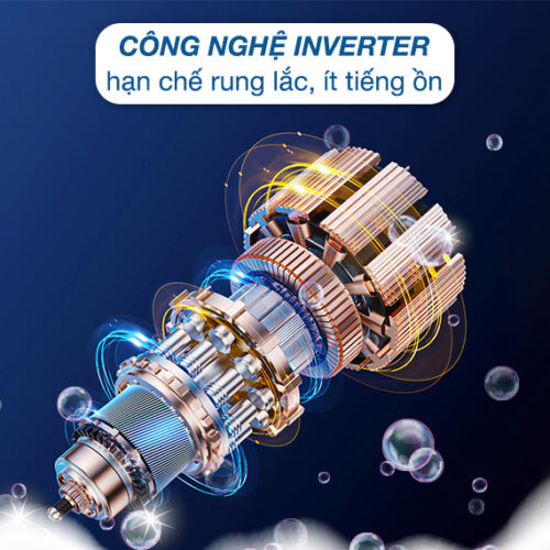 Máy giặt LG này còn sử dụng công nghệ Inverter có khả năng điều chỉnh vòng quay của động cơ, giúp lồng giặt được hoạt động hiệu quả trong mỗi chu trình giặt, từ đó tiết kiệm và nước sử dụng mà vẫn đảm bảo khả năng giặt sạch tối ưu cho quần áo. Hơn nữa, công nghệ này còn giúp máy vận hành êm ái, giảm thiểu tiếng ồn và độ rung lắc đáng kể trong suốt quá trình hoạt động.