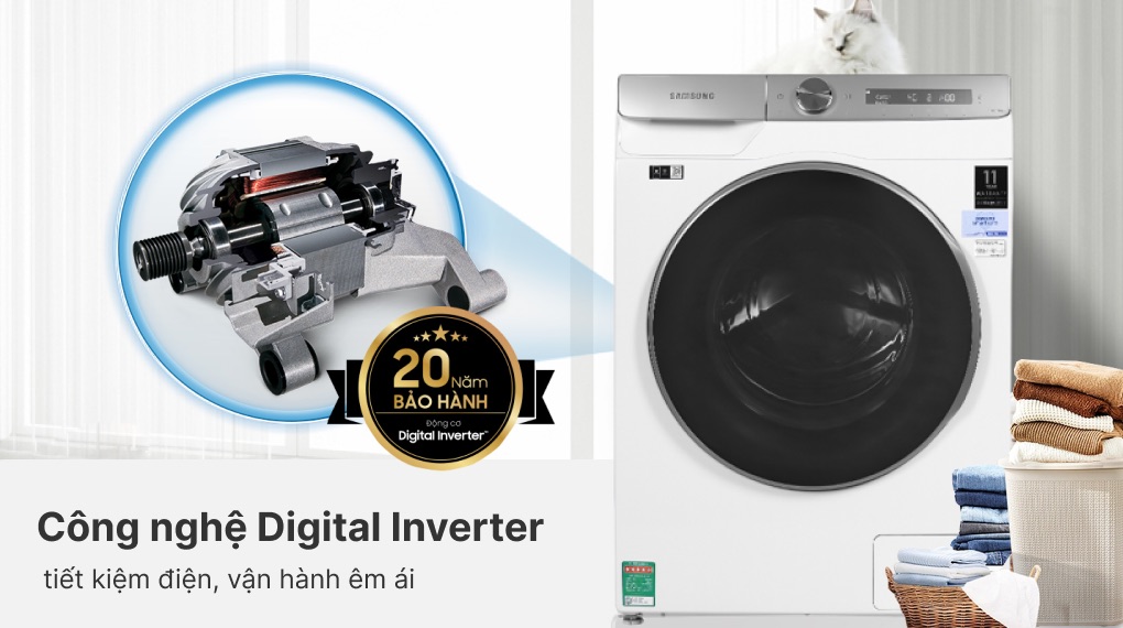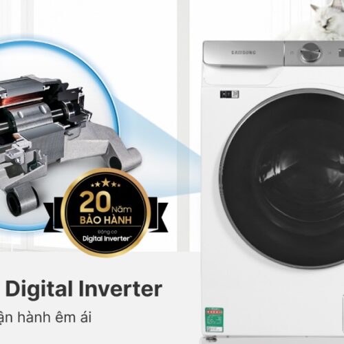 Máy giặt Samsung tích hợp động cơ truyền động trực tiếp, công nghệ Digital Inverter giảm thiểu ma sát khi hoạt động, đảm bảo thiết bị vận hành êm ái, tiết kiệm điện năng đồng thời sử dụng bền bỉ trong suốt quá trình sử dụng.