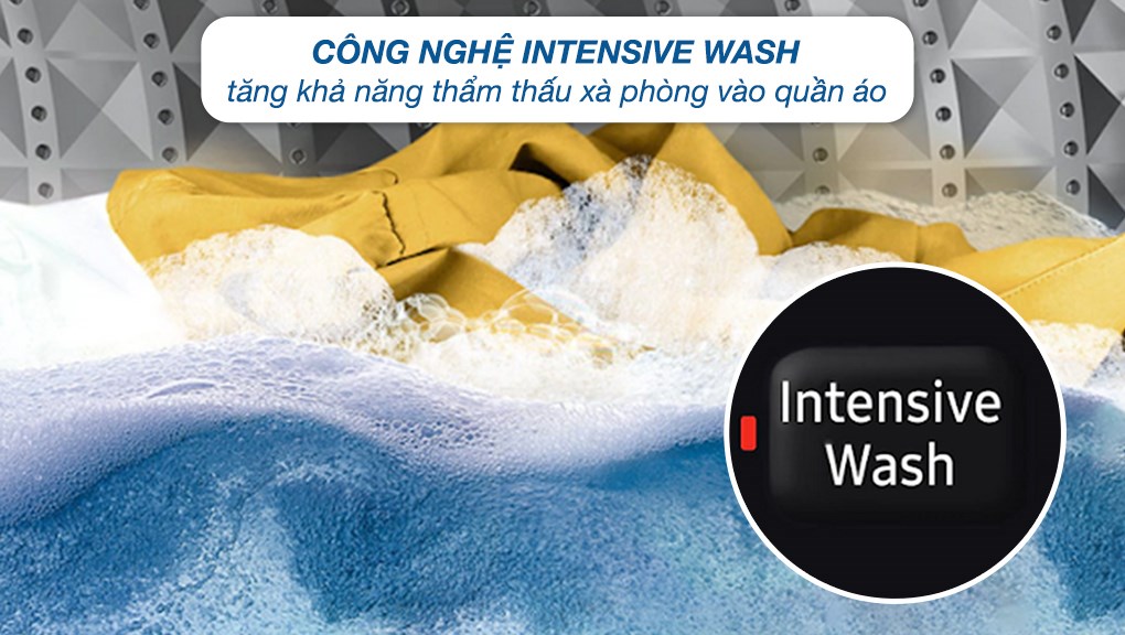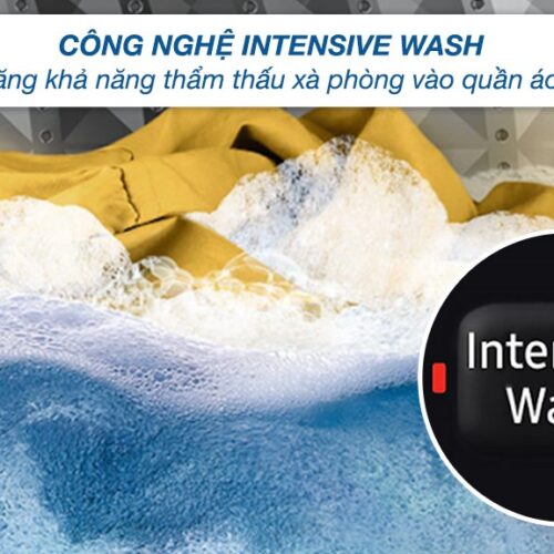 – Công nghệ Intensive Wash: máy giặt hỗ trợ công nghệ này có khả năng làm tan bột giặt nhanh chóng để nước thẩm thấu vào vài sâu, giải quyết những vết bẩn cứng đầu dễ dàng.