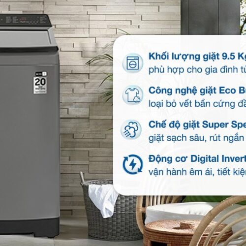 - Khối lượng giặt: 9.5 Kg