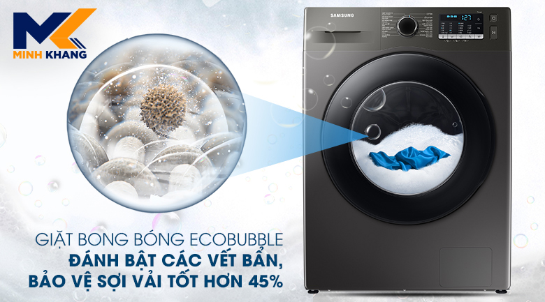 – Công nghệ giặt bong bóng siêu mịn Eco Bubble: kích hoạt chất giặt tẩy cùng với sự kết hợp giữa khí và nước tạo thành những bong bóng siêu mịn đi sâu vào sợi vải nhanh chóng, loại bỏ các vết bẩn bám cứng đầu hiệu quả và tiết kiệm thời gian giặt đến 40% cho nhiều chế độ giặt được thiết lập trên máy.
