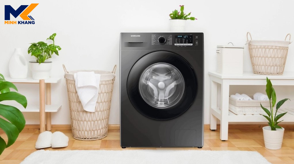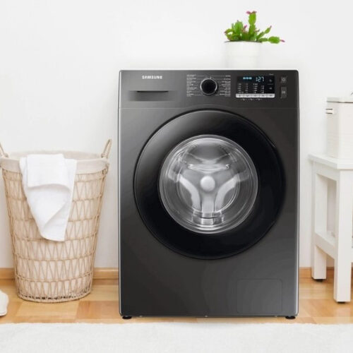 Máy giặt Samsung Inverter 9.5Kg WW95TA046AX/SV thuộc kiểu máy lồng ngang hiện đại cùng tông màu đen sang trọng góp phần tô điểm cho không gian sống của bạn. Bảng điều khiển song ngữ Anh – Việt, có màn hình hiển thị thân thiện, thiết kế nghiêng ở mặt sau của máy tránh được tình trạng nước tràn vào bề mặt màn hình điều khiển và cho người dùng thao tác dễ dàng.