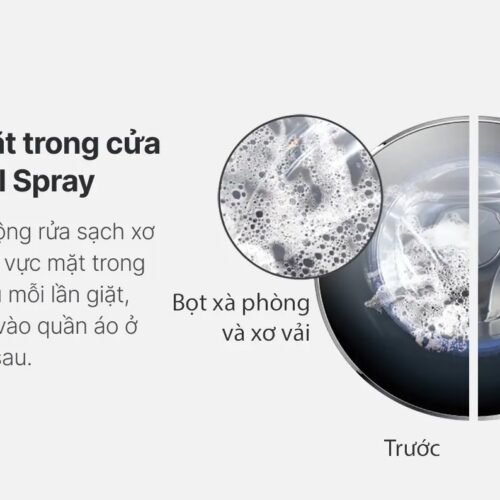- Vệ sinh lồng giặt: Smart Dual Spray -Tự làm sạch mặt trong cửa và vòng đệm cửa
