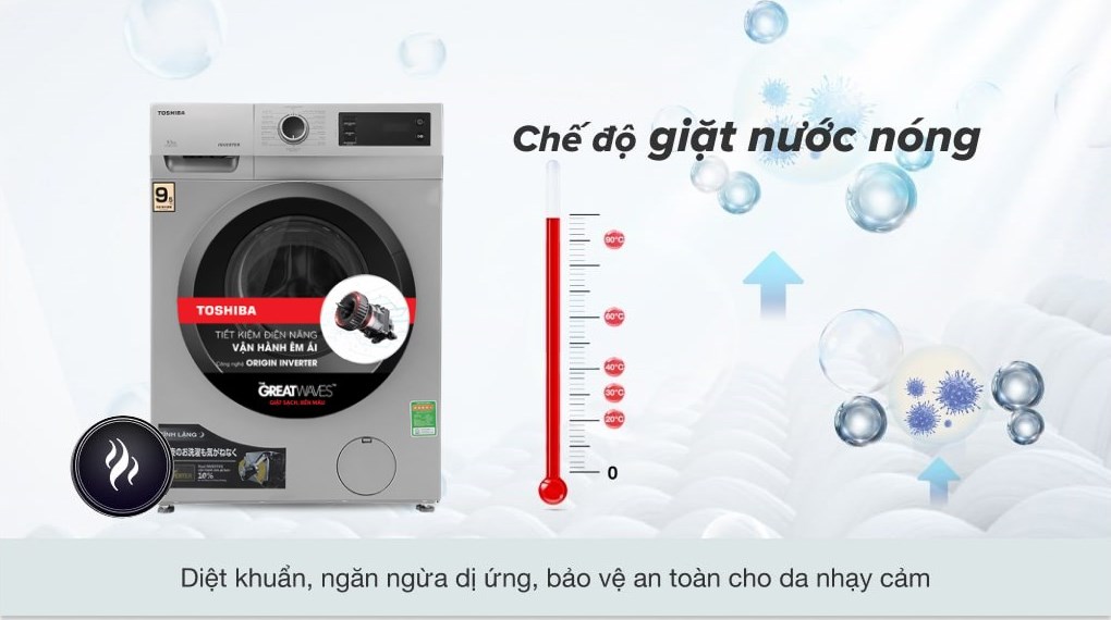 – Công nghệ giặt nước nóng góp phần làm sạch các vết bẩn cứng đầu dễ dàng hơn, đồng thời hỗ trợ diệt khuẩn nhằm mang lại sự an toàn và yên tâm cho người dùng, nhất là với những người có làn da nhạy cảm và trẻ nhỏ.