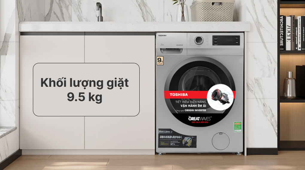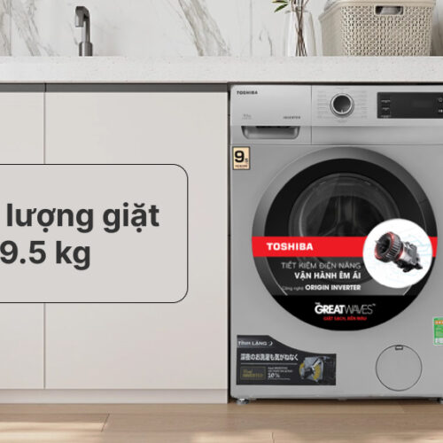 Máy giặt Toshiba Inverter TW-BK105S3V(SK) 9.5Kg thuộc dòng cửa ngang sang trọng với gam màu xám đậm, vỏ ngoài làm từ kim loại sơn tĩnh điện duy trì tính thẩm mĩ cao, sử dụng bền bỉ, kết cấu chắc chắn giúp bảo vệ linh kiện bên trong an toàn khi vận chuyển, sử dụng. Thêm vào đó, tích hợp bảng điều khiển cảm ứng chỉ dẫn song ngữ Anh – Việt đi kèm nút xoay, màn hình hiển thị rõ nét mang đến sự thuận tiện cho người dùng.
